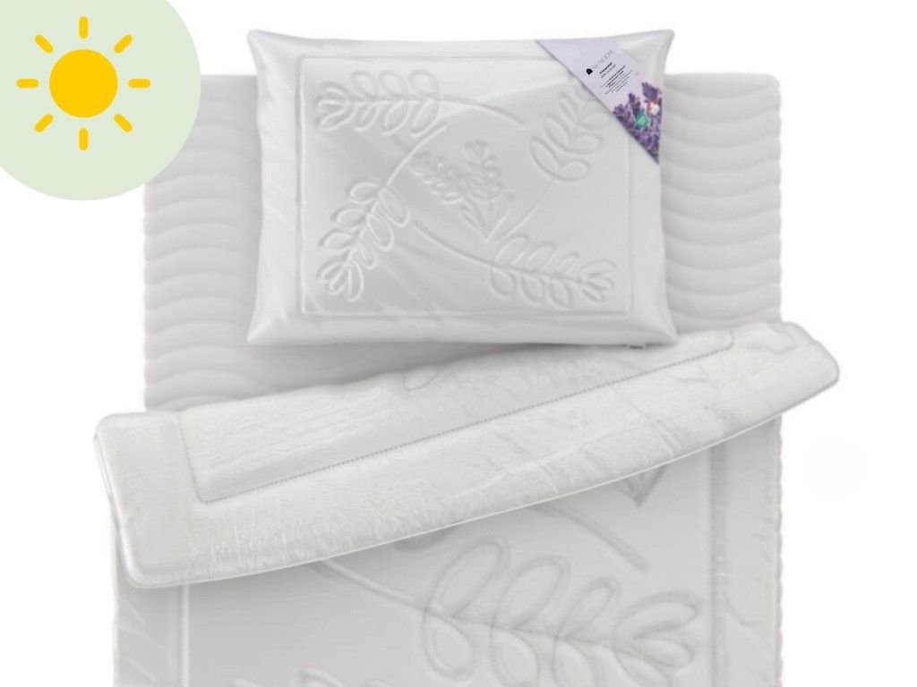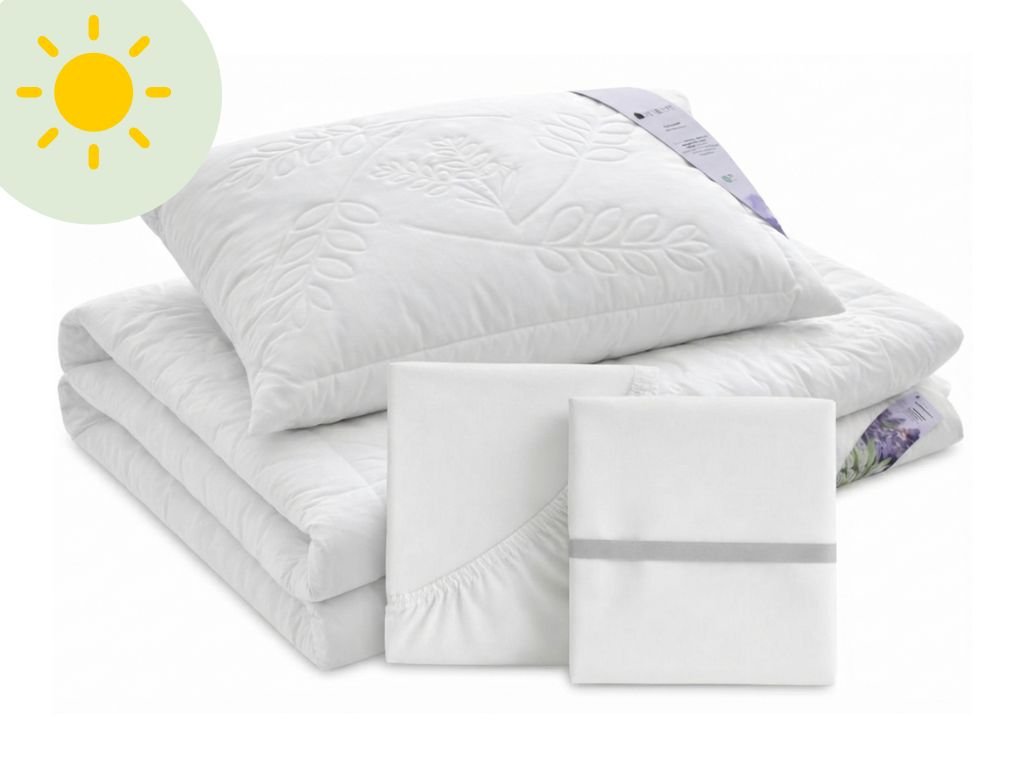 | Sada obsahuje: | 1x polštář 70x90 cm a přikrývka 140x200 cm , 1x bílé prostěradlo, 1x chránič matrace |