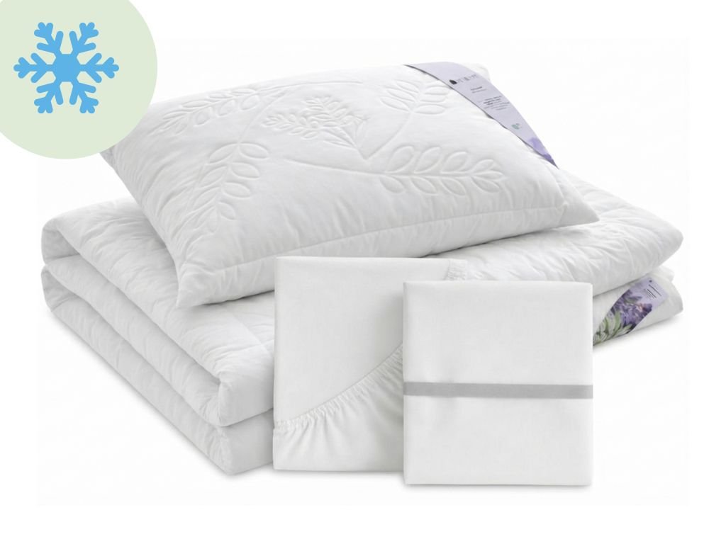 | Sada obsahuje: | 1x polštář 70x90 cm a přikrývka 140x200 cm , 1x bílé prostěradlo, 1x chránič matrace |
