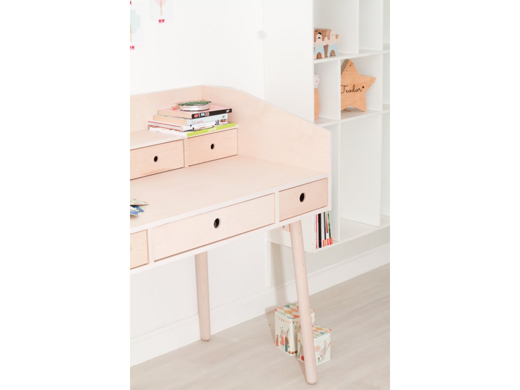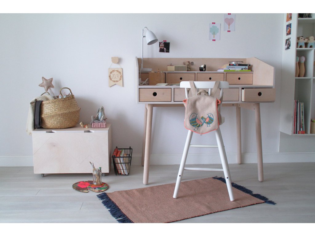 Psací stůl doporučujeme doplnit o ergonomickou židli pro pohodlné a bezpečné sezení vašeho dítka.