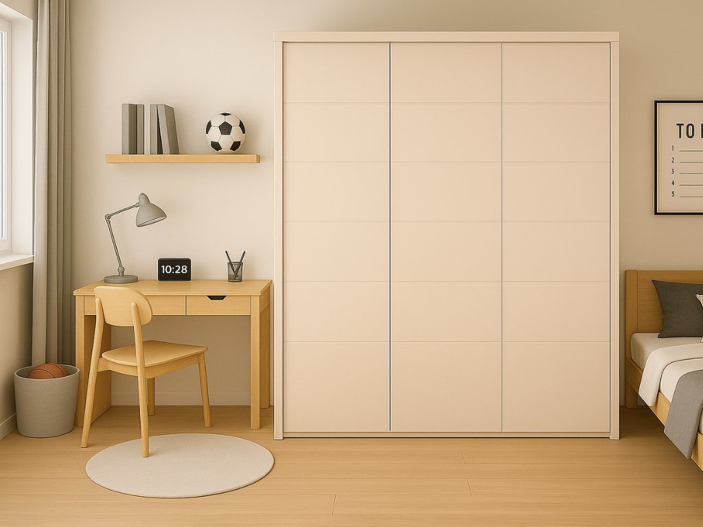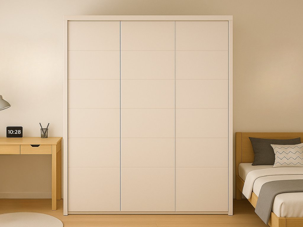 Třídveřová šatní skříň s policemi a šatními tyčemi SIMONE krémová