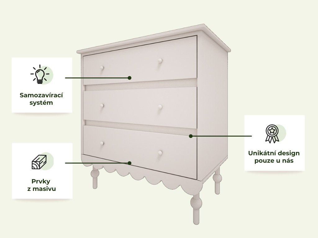 Úložná komoda se třemi šuplíky do dětského pokoje BABUSHKA bílá