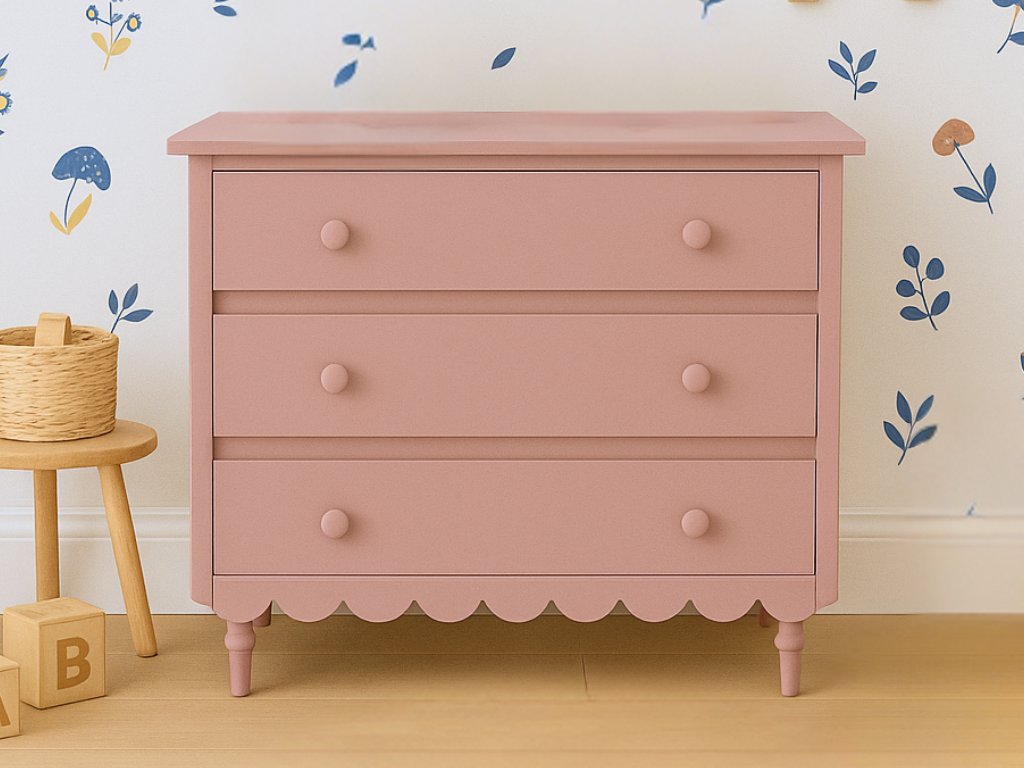 Úložná komoda se třemi šuplíky do dětského pokoje BABUSHKA korálová