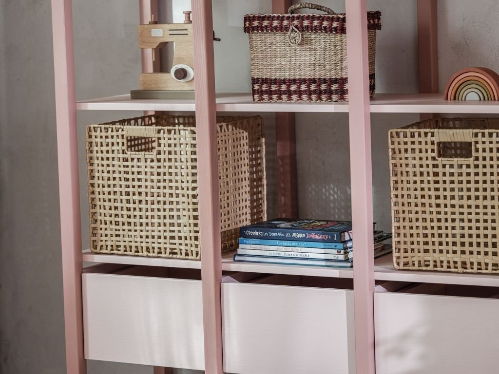 Úložný regál s policemi a šuplíky TWEENS korálový