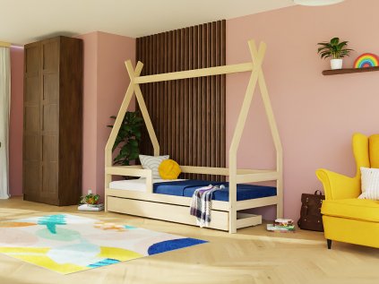 Dětská dřevěná postel NAKANA ve tvaru teepee s bočnicí