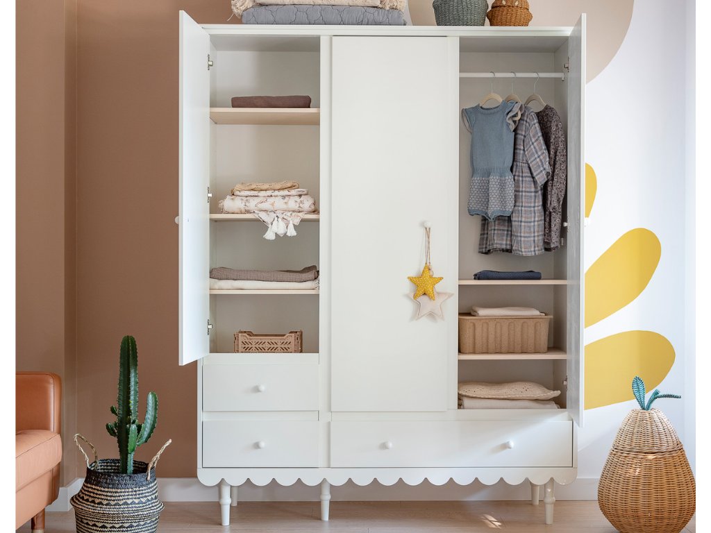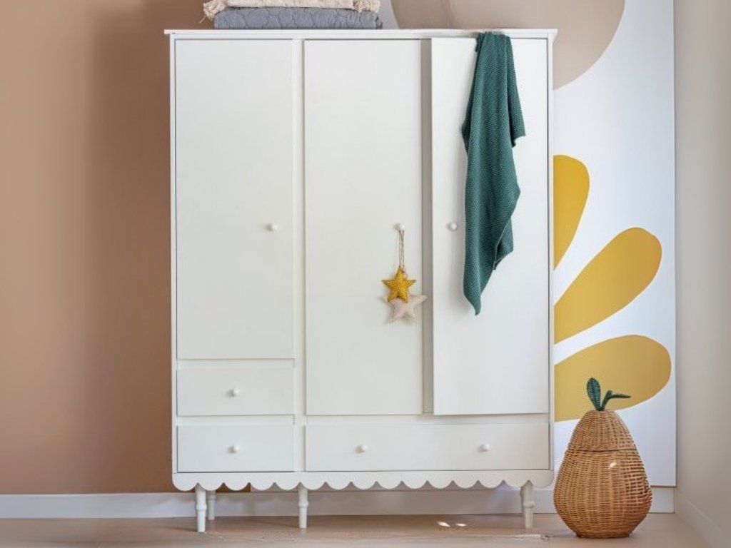 Velká třídveřová šatní skříň do dětského pokoje BABUSHKA bílá