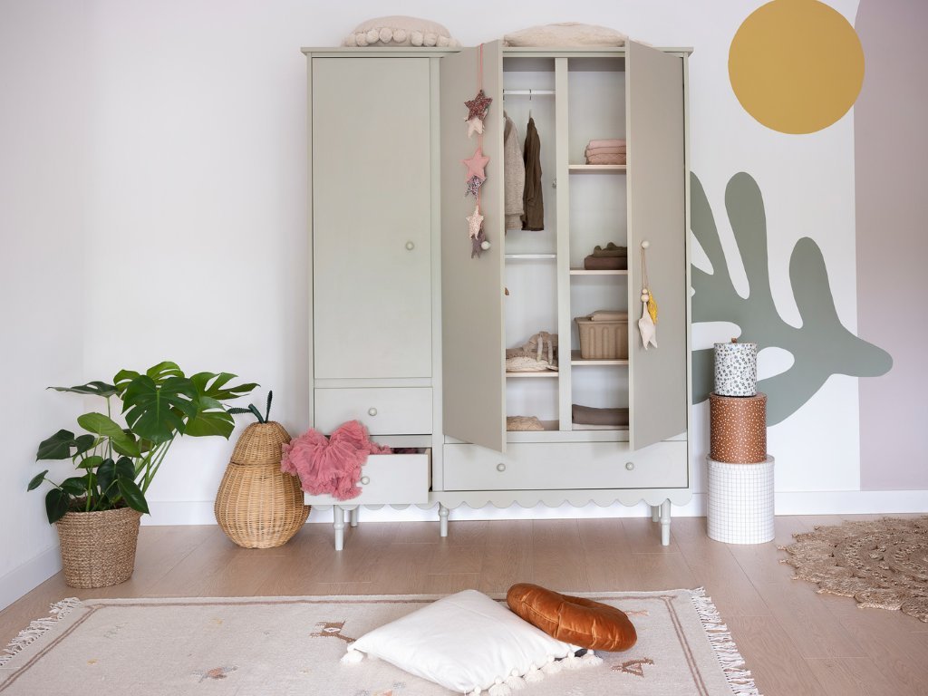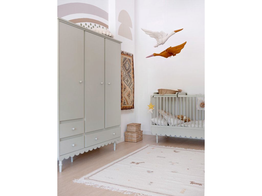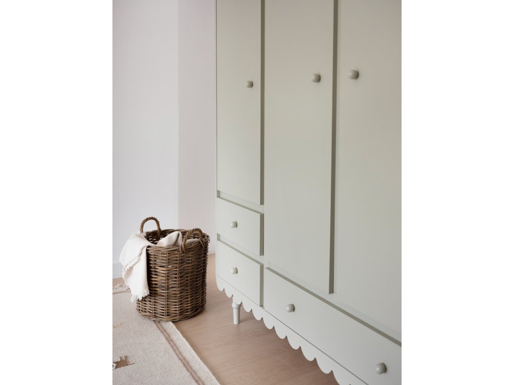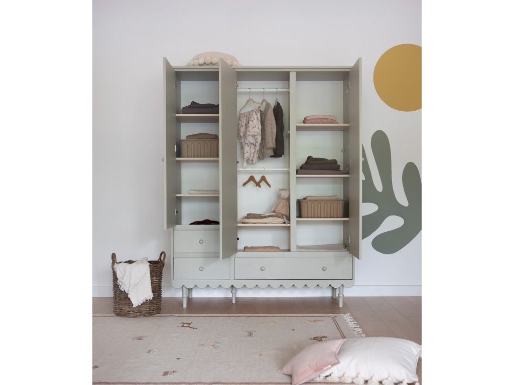 Velká třídveřová šatní skříň do dětského pokoje BABUSHKA olivová