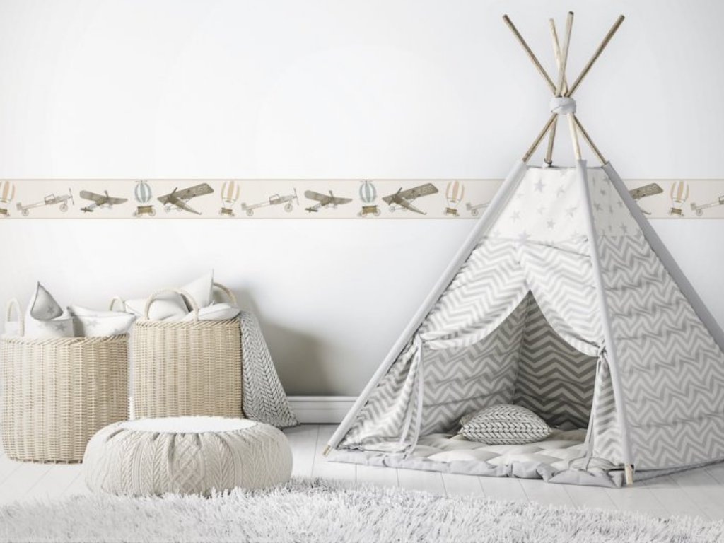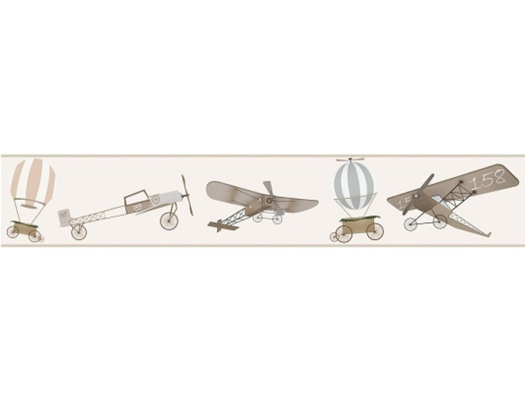 Vinylová nástěnná bordura BALONY A LETADLA do dětského pokoje