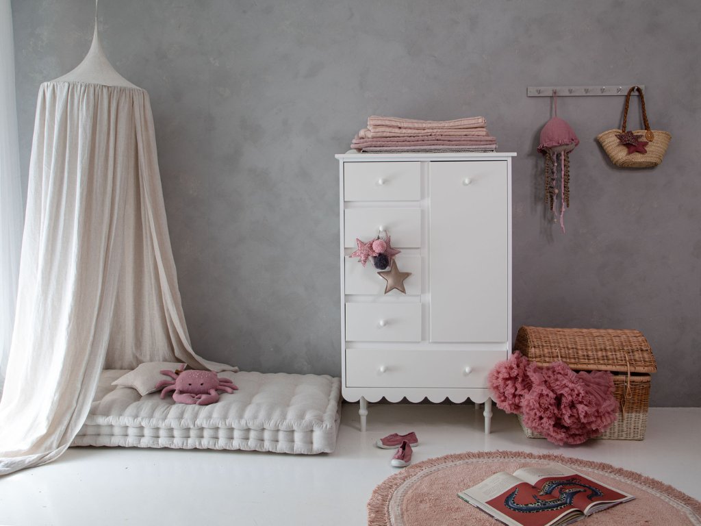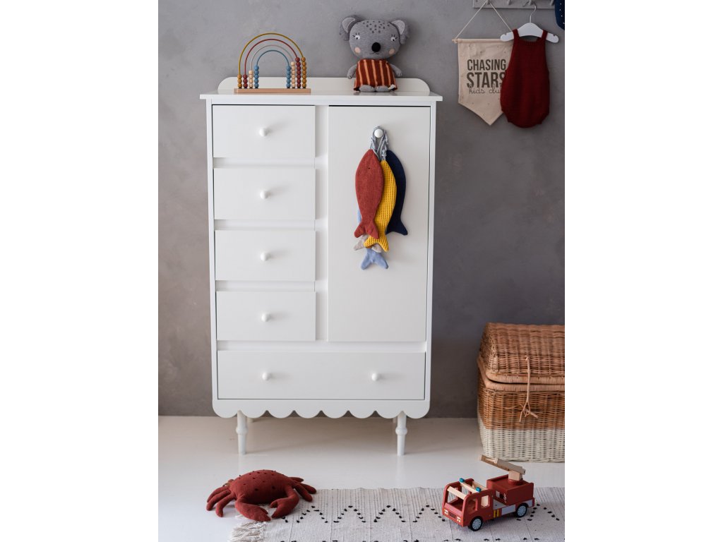 Vysoká úložná komoda do dětského pokoje BABUSHKA bílá