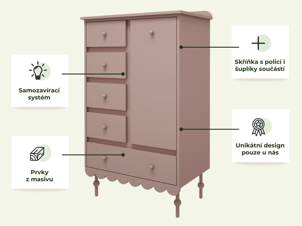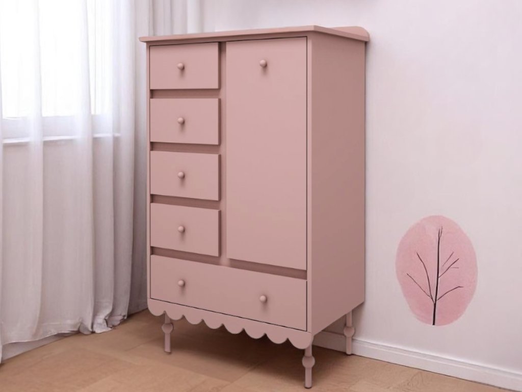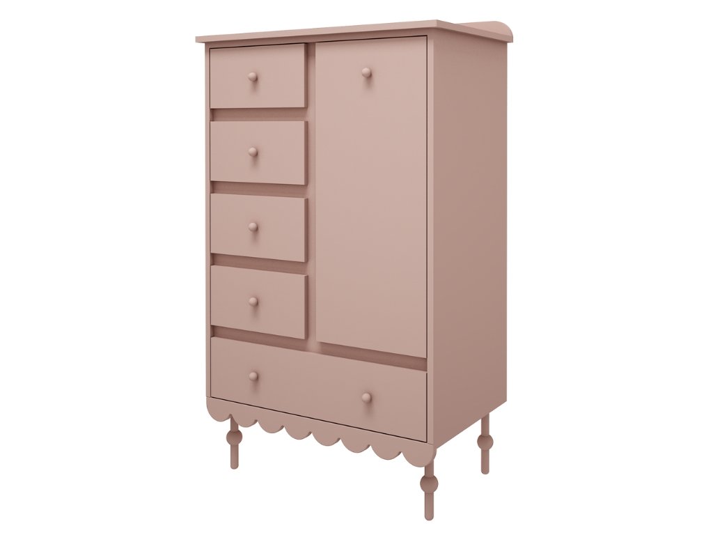 Vysoká úložná komoda do dětského pokoje BABUSHKA korálová