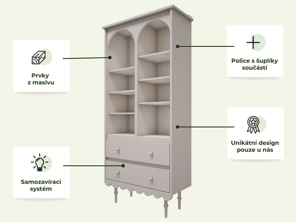 | Materiál: | laminované melaminové desky, MDF, prvky z bukového dřeva |
