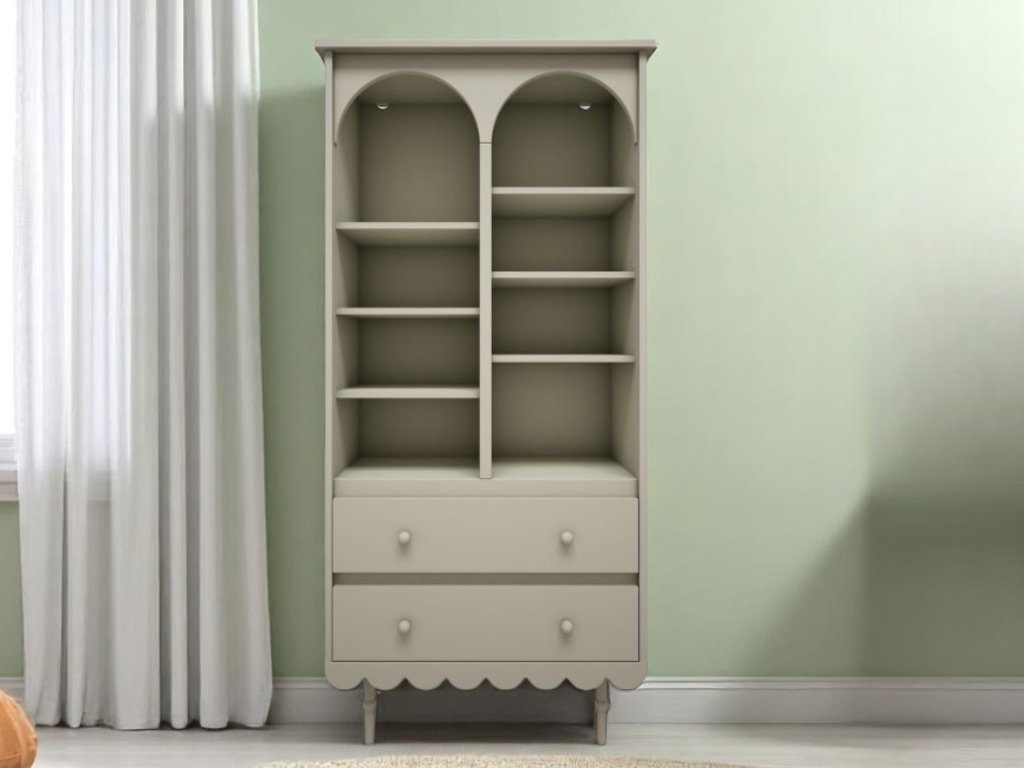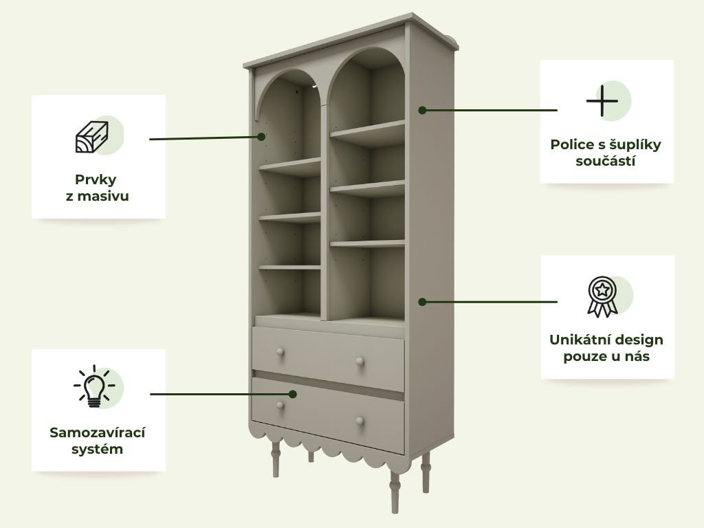 Vysoký úložný regál s policemi a šuplíkem BABUSHKA olivový