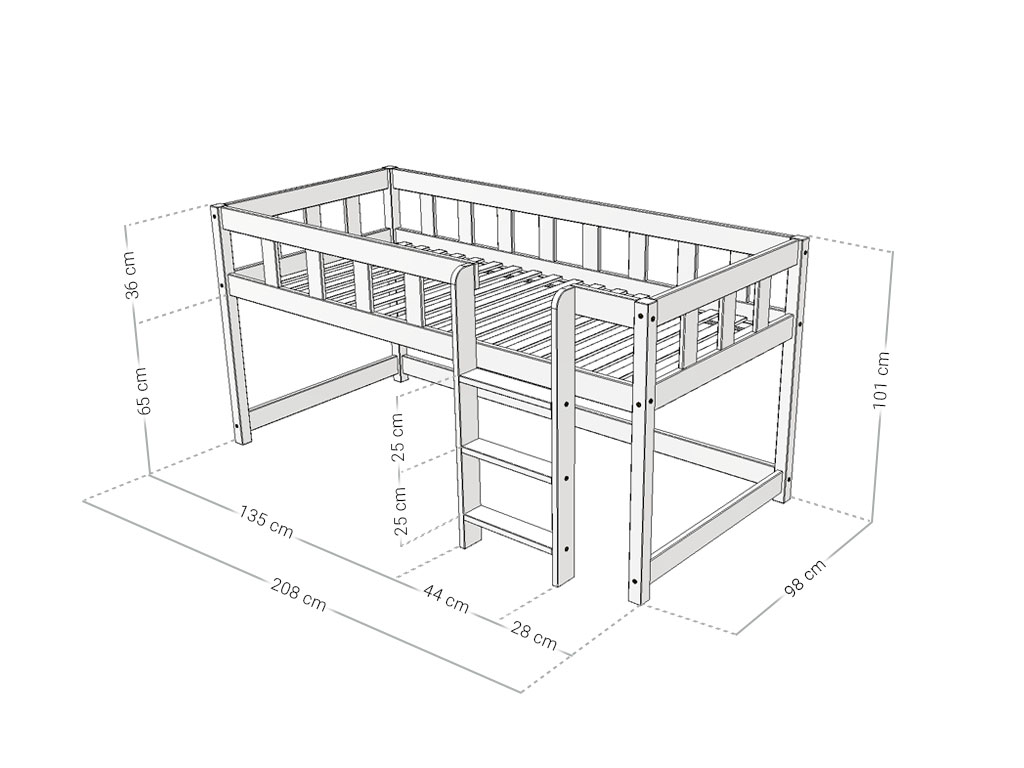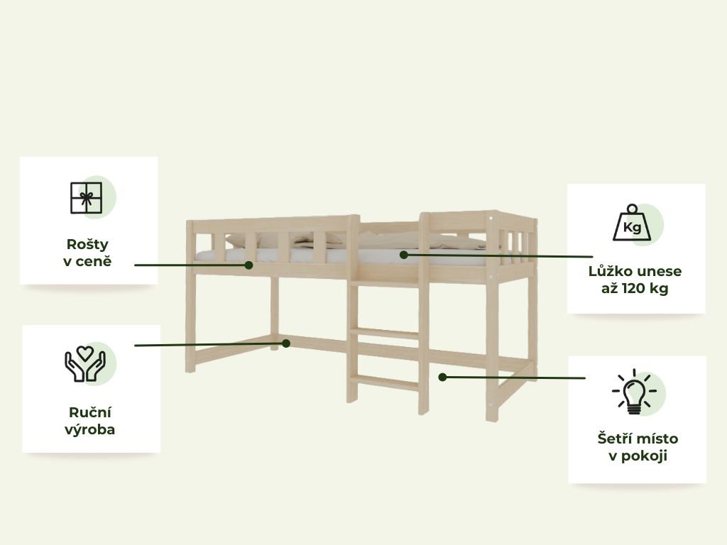 Nízká vyvýšená postel PLOTTY s žebříkem 90x200 cm