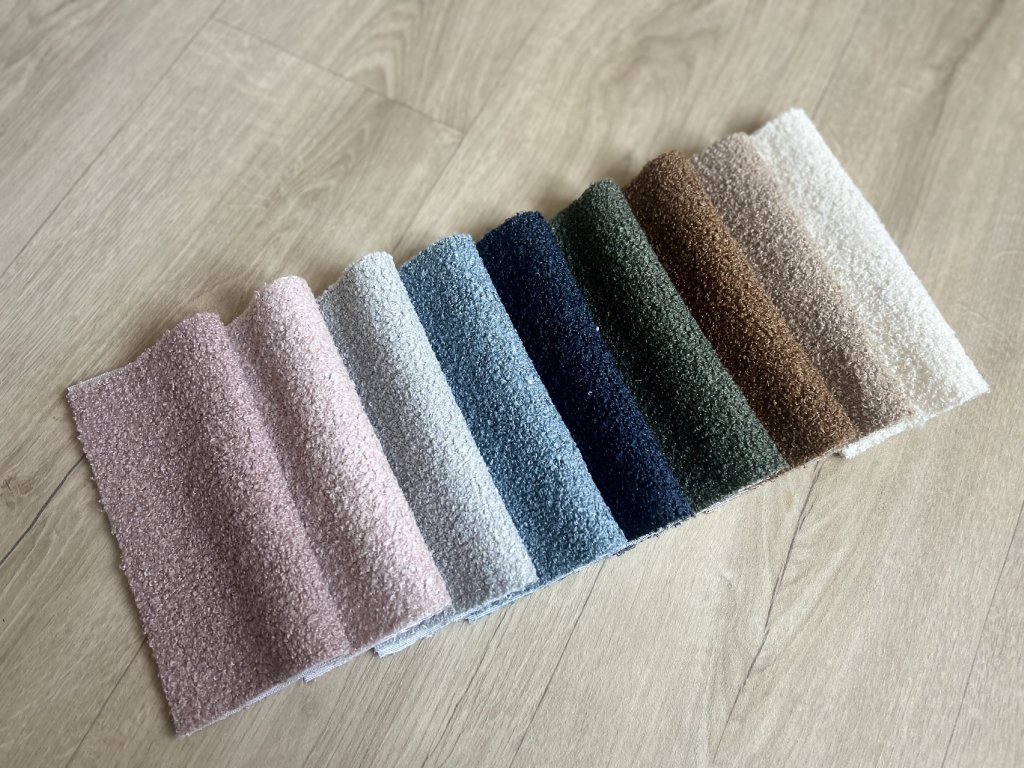 Vzorník látek bouclé pro nástěnné čalouněné panely