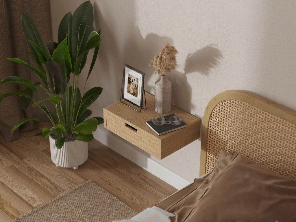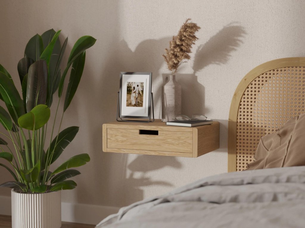 Zaoblený závěsný noční stolek se šuplíkem LUNA FLO přírodní