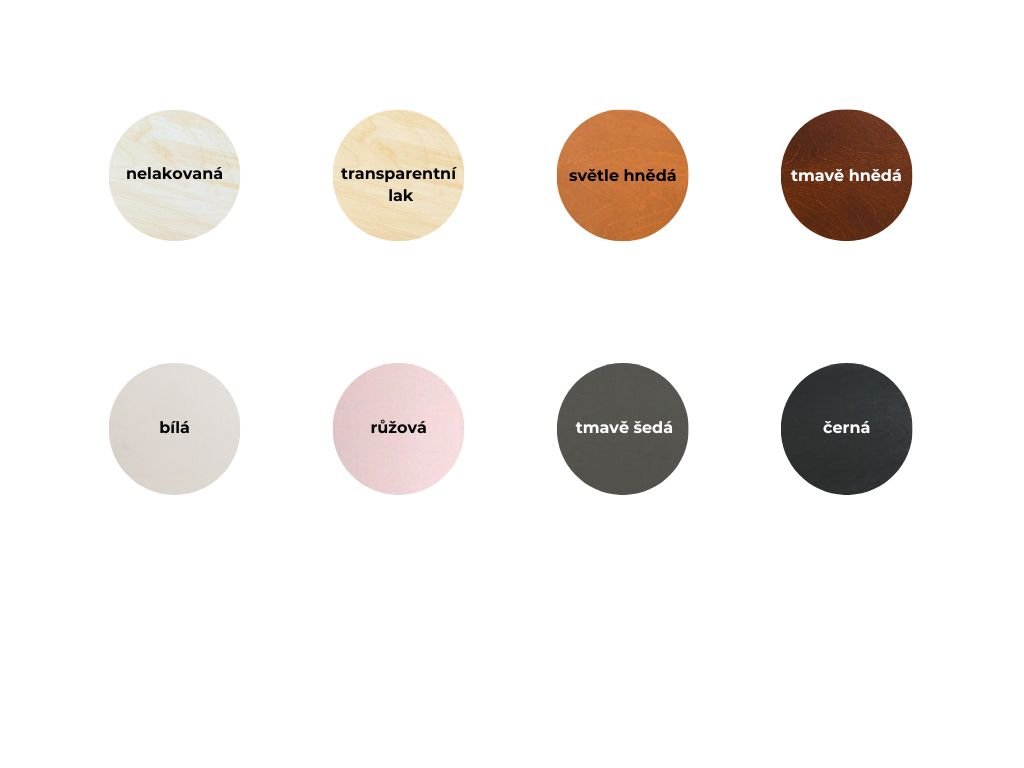 Lakování: EKO barvy vhodné pro dětský nábytek i hračky (viditelná struktura dřeva)